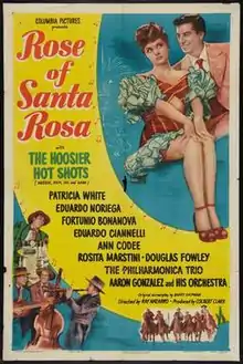 Rose of Santa Rosa is a 1947 American comedy film directed by Ray Nazarro and written by Barry Shipman. The film stars Patricia Barry, Eduardo Noriega, Fortunio Bonanova, Eduardo Ciannelli, Ann Codee, Rosita Marstini and Douglas Fowley. The film was released on December 25, 1947, by Columbia Pictures.[1][2][3]