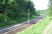 The Rosenheim–Salzburg railway is a continuous double track and electrified main line railway almost entirely within the German state of Bavaria. It is an international transport corridor, linking Rosenheim to Salzburg in Austria.