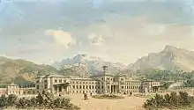 The first plan for a railway line between Rosenheim and Salzburg was in Friedrich List’s proposal in September 1828, which laid out as the main lines of the Bavarian network, a line from Bamberg via Nuremberg, Augsburg and Memmingen to Lindau, another from Kitzingen via Nuremberg and Augsburg to Munich and a third from Günzburg via Augsburg and Munich towards Austria. Simon Freiherr von Eichthal, a banker to the King of Bavaria, also called for a railway from Munich to Salzburg in 1835. On 5 January 1836, von Eichthal began a preliminary investigation of the building of the line. A messenger of the Bavarian government reported to the Austrian government on 7 April 1836 on the planned construction of the line. In 1838, von Eichthal failed to raise the necessary funds to carry the plan forward.[2][3]