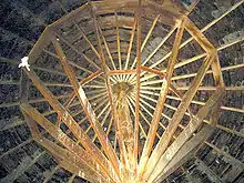 A round barn is a historic barn design that could be octagonal, polygonal, or circular in plan. Though round barns were not as popular as some other barn designs, their unique shape makes them noticeable. The years from 1880 to 1920 represent the height of round barn construction.[1] Round barn construction in the United States can be divided into two overlapping eras. The first, the octagonal era, spanned from 1850 to 1900. The second, the true circular era, spanned from 1889 to 1936. The overlap meant that round barns of both types, polygonal and circular, were built during the latter part of the nineteenth century.[2] Numerous round barns in the United States are listed on the National Register of Historic Places.[3]