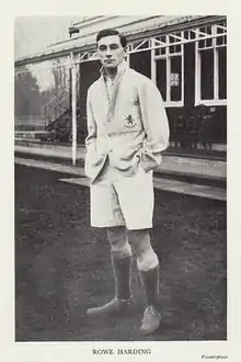 W. Rowe Harding (10 September 1901 – 10 February 1991) was a Welsh international rugby union wing who played club rugby for Swansea. An intelligent player, Harding played for several teams at club and international level. In 1926 he attended Cambridge University and played for Cambridge in a varsity match. Rowe retired from rugby at the age of 28 when he was called to the bar, and would later become a Circuit Court judge in 1953. Harding spent his later life connected with all manner of sports. He was Welsh Rugby Union vice-president from 1953 to 1956, chairman and president of Glamorgan County Cricket Club, president of Swansea Lawn Tennis and Squash Rackets Club[3] and patron of Cwmgors RFC.