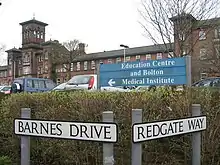 The hospital joined the National Health Service in 1948 and became Bolton District General Hospital in 1951.[1] After the services of the Bolton Royal Infirmary transferred to Bolton District General Hospital in 1996,[3] the latter facility became the Royal Bolton Hospital.[1][4] The old 'Fishpool Institute' buildings were demolished in 2011.[2]