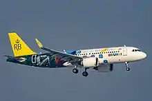 - One of Royal Brunei Airlines' Airbus A320neo (registration V8-RBD) has a new special livery related to Brunei tourism, which was revealed in an official launch event for the aircraft's new fleet in September 2018.