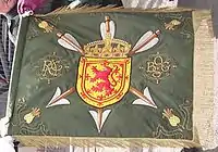 The Royal Company has two standards. The first of these bears on one side Mars and Cupid encircled in a wreath of thistles, with this motto: In peace and war. On the other, a yew tree, with two men dressed and equipped as archers, encircled as the former motto: Dal gloria vires (Glory Gives Strength). The other standard displays on one side, on a field or, a lion rampant gules, encircled with a double tressure flory-counter flory of the second (the Royal Arms of Scotland); on the top, a thistle and crown, motto: Nemo me impune lacessit (no one provokes me with impunity). On the other, St Andrew on the cross on field argent; at the top, a crown, motto: Dulce pro patria periculum (danger is sweet for one's country).[27]