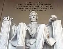 Cortissoz wrote the inscription engraved above the statue of Abraham Lincoln in the Lincoln Memorial in Washington, D.C.: "In this temple, as in the hearts of the people for whom he saved the Union, the memory of Abraham Lincoln is enshrined forever."[4]