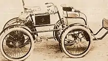 By 1899, Royal Enfield were producing a quadricycle – a bicycle modified by adding a wrap-around four-wheeled frame, retaining a rear rider-saddle with handlebars – having a front-mounted passenger seat, driven by a rear-mounted De Dion engine.[22]