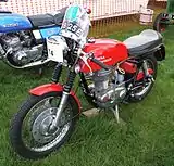 In 1965, a 21 bhp (16 kW) variant called the Continental GT, with red GRP tank, five-speed gearbox (which was also an option on the Crusader), clip-on handlebars, rearset footrests, swept pipe and hump-backed seat was launched. It sold well with its race-styling including a fly-screen resembling a race number plate which doubled as a front number plate mount.[29]