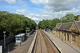 As noted, the station is unmanned but has a ticket vending machine where tickets must be purchased or collected before boarding. The main buildings on platform 2 are privately occupied. Train running information is offered via digital displays, automatic announcements, timetable posters and customer help points on each platform. Step-free access is only provided on platform 2, as platform 1 can only be reached via a footbridge with stairs.[7]