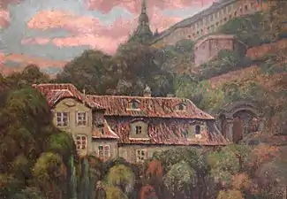 He often stayed at Jaroslav's villa in Pec pod Čerchovem, and his death in 1917 may have prompted Rudolf to enter a special school, operated by Vratislav Nechleba, at the Academy of Fine Arts, Prague, which he attended until 1923. After that, he undertook several study trips to Germany, France and Italy. He came to specialize in still-lifes, nudes, portraits and landscapes. Despite becoming quite proficient, he remained mostly an amateur as a painter, although he exhibited regularly at the Rubeš Gallery. His total output was, as might be expected, rather small.