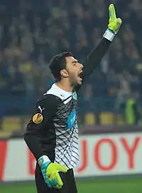 Rui Pedro dos Santos Patrício ComM (Portuguese pronunciation: [ˈʁuj pɐˈtɾisju]; born 15 February 1988) is a Portuguese professional footballer who plays as a goalkeeper for Serie A team Roma and the Portugal national team.
