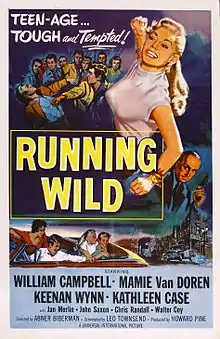Running Wild is a 1955 American film noir crime film directed by Abner Biberman and starring William Campbell, Mamie Van Doren, Keenan Wynn, and Kathleen Case. The film was often paired with Tarantula as part of a double feature.[1]
