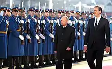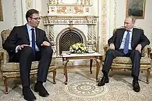 The visit to Russia by Serbia's president Aleksandar Vučić in December 2017 was hailed by Politika as a symbolic ending of ″decades of stagnation in relations″.[69] In November 2019 Serbian security services revealed activities of Russian intelligence operatives who were meeting and passing money to Serbian army officials.[70]