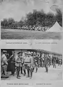 On 11 March the 1st Russian Brigade relieved the 152nd French brigade in the Courcy sector, just to the north of Reims[7] They were part of Mazel's Fifth Army and took their place in the frontline, where they suffered casualties in the run up to the Nivelle Offensive. On 15 April, on the eve of the Second Battle of the Aisne, the Russian soldiers received news of the February Revolution in Russia. They formed a soviet and debated whether to participate in the battle the next day, agreeing to do so by a small majority. Thus the next day, 16 April 1917, the 1st Brigade took part in the battle and took Courcy, just to the north of Rheims.[7] On 23 April the 1st Infantry Brigade transferred to the Châlons-sur-Marne area, overseen by général Henri Gouraud of the French Fourth Army. French President Raymond Poincaré, impressed by the state of the Russian camp, awarded General Lokhvitsky the Commander of the Legion of Honor. The 1st Brigade was then re-deployed further east up the Marne valley between Suippes and Auberive at the end of June 1916.[1]