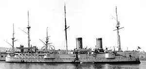 Vladimir Monomakh (Russian: Владимир Мономах) was an armoured cruiser built for the Imperial Russian Navy during the 1880s. The vessel was named after Vladimir II Monomakh, Grand Prince of Kiev. She spent most of her career in the Far East, although the ship was in the Baltic Sea when the Russo-Japanese War began in 1904. Vladimir Monomakh was assigned to the Third Pacific Squadron and participated in the Battle of Tsushima in May 1905. She was tasked to protect the Russian transports and was not heavily engaged during the daylight portion of the battle. The ship was torpedoed during the night and was scuttled the following morning by her captain to prevent her capture by the Japanese.
