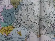 After the Partitions of Poland, Rutheni "came to be associated primarily with those [East Slavs] who lived under the Habsburg monarchy" (and was used as an official designation in the Austrian Empire after 1843).[23] In the Kingdom of Hungary, Ruthene was used as the official term for the Rusyn people (Hungarian: rutén or ruszin) of Transcarpathia until 1945.[24] During the early twentieth century the term "became even more restricted: it was generally used to refer to the inhabitants of Transcarpathia and to Transcarpathian emigrants in the United States", for whom the terms Rusyn and Carpatho-Rusyn are more commonly used since the 1970s.[23]