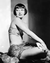 Ruth entered show business about 1923 when her friend, Blanche Mehaffey, told of her fun experiences at the Ziegfeld Follies.[27] Ruth dropped out of Barnard College and signed a contract to dance chorus at the New York Hippodrome theater (three miles from her house).[1][note 3] She then sought out and performed at many of the top New York City nightclubs, speakeasies and Broadway theaters until the mid-1940s, including: the original Cotton Club, Savoy Ballroom, Onyx Club, Reisenweber's Cafe, Adrian's Tap Room, Smalls Paradise, Helen Morgan's 54th Street Club, The Nest, Nick's, and Leon & Eddie's.[25][6][10] She was the first Japanese performer on Broadway and one of the first chorus girls who sought to produce her own Broadway show.[7][20][24][1][19][20][7] From 1922 to 1936 she worked as a chorus girl, singing and dancing in musicals. Early on Ruth worked for Broadway producer Vinton Freedley then for Arthur Hammerstein and then for Billy Rose (1931-1935).[28][1] Ruth performed in at least eight Broadway musicals: "Song of the Flame", "The Wild Rose", "Lady Do", "Funny Face," "Hold Everything," "Sweet and Low," "Billy Rose’s Crazy Quilt", and "Heads Up."[2][9][24][1] The highly acclaimed shows were: Funny Face, Hold Everything!, Song of the Flame, Heads Up, and George White's Scandals.[note 4]