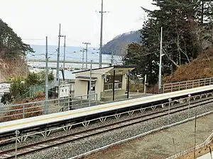 Ryōishi Station opened on 23 July 1951 as an intermediate station of Yamada Line. The station was absorbed into the JR East network upon the privatization of the Japan National Railways (JNR) on 1 April 1987. Operations on the Yamada Line between Miyako Station and Kamaishi Station were suspended after the 11 March 2011 Tōhoku earthquake and tsunami. As of 2018, the station have been rebuilt along with the rest of the closed segment of the Yamada Line. It was transferred to the Sanriku Railway upon completion on 23 March 2019. This segment joined up with the Kita-Rias Line on one side and the Minami-Rias Line on the other, which together constitutes the entire Rias Line.[1] Accordingly, this station became an intermediate station of Rias Line.