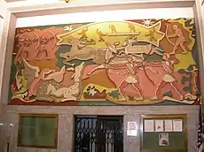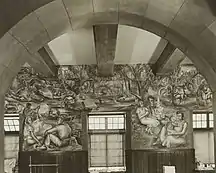 In 1935 she returned to New York from Mexico began work in the Federal Arts Project, serving, at various times, as artist, senior artist, or supervisor.[30] Over the succeeding eight years, she designed seven murals of which four were completed.[26] One of these was a fresco called "Recreational Grounds of New York City" that she made for the men's recreation room of New York's Bellevue Hospital (1939).[1][5] A photo of this fresco is shown above. Other Federal Arts Project murals by her include "New York Harbor" (made in wood intarsia, location unknown).[31] In 1941 she was runner up in Federal Arts Project competitions for two projects in New York City and one in Washington, D.C.[26][32]