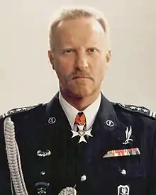 Brigadier General Sławomir Petelicki (13 September 1946 – 16 June 2012) was the first commander of the Polish special forces unit GROM from July 13, 1990, until December 19, 1995. Later, he was the head of the Foundation of Former GROM Soldiers.[1]