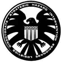 S.H.I.E.L.D. (Strategic Hazard Intervention Espionage Logistics Directorate) is the Amalgam Comics equivalent of S.H.I.E.L.D. from Marvel Comics. They first appeared in Bruce Wayne Agent of S.H.I.E.L.D. #1, though, in Amalgam continuity, they first appeared in the metafictional Agents of S.H.I.E.L.D. strip. S.H.I.E.L.D. was first created by Nick Fury and Sgt. Rock after World War II in order to tackle the danger posed by Hydra. Both founders later trained and recruited Bruce Wayne into their ranks, who would become the new director of S.H.I.E.L.D.