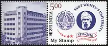SNDT Women's University, also called by its full name Shreemati Nathibai Damodar Thackersey Women's University, is a women's university in the city of Mumbai, India. The university headquarters are at Churchgate in South Mumbai, while the main campus is at Churchgate there are two other campuses one in Santacruz–Juhu area of Mumbai and another at Pune. The university has affiliated colleges in Maharashtra, Assam, Uttar Pradesh, Bihar, Madhya Pradesh, Surat and Goa, as well.[2]