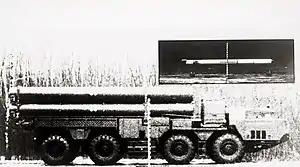 The ground-launched variant was subject to the Intermediate-Range Nuclear Forces Treaty signed in December 1987 and had been tested.[9] Six launchers with 84 missiles was deployed at the Missile/Launcher Storage in Jelgava (Latvian Soviet Socialist Republic) and had been destroyed by November 1990.[10][11][12]