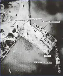 A large number of troops from the 51st Missile Division, 664th Missile Regiment, including the regiment headquarters, combat support, and service subdivisions were housed in hold number 4 at 23.00 LT on 3 October 1962.[4][5] At the time, only the commanding officer knew that the destination was Cuba. Before launching, General Degtyarev, who was in charge of the Defence Ministry at the time, held a briefing. The general handed a secret package, marked "To be opened four days after the passage of the Strait of Gibraltar", to the master of the ship at Babienko N.Z. on 4 October. Later that day, at 02:00 4 October 1962, the ship unmoored and began its maiden voyage to the Strait of Gibraltar.[3]