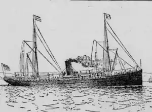 In April 1905, San Juan was caught in a storm, which nearly capsized her. The storm damaged all her machinery, including her engine. Due to this, San Juan, now 24 years old, arrived late to San Francisco, California. At this point in her career, San Juan was known for being unreliably slow.[3] In June 1905, San Juan carried 58 Russian immigrants from Panama to California, where they joined a Slavic community in Los Angeles, California. The immigrants came from Batum. One Russian girl on San Juan was supposedly suffering from trachoma, which threatened to have her deported when the steamer reached its American dock.[4]