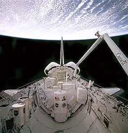 ![]() ATLAS-3 in the payload bay of Atlantis, while the Shuttle's Canadarm grapples CRISTA-SPAS | |