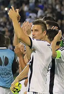On 15 June 2011, it was announced that Marković had signed a four-year contract with Partizan.[2] He scored his first goal for the club in a league match against Borac Čačak on 29 April 2012. He also played all six matches of the 2012–13 UEFA Europa League group stage campaign and scored a skillful goal against Rubin Kazan, after which he celebrated by dancing to the rhythm of Gangnam Style.[3] He scored an amazing goal in 2014-15 UEFA Europa League game against Beşiktaş at the Atatürk Olympic Stadium in Istanbul.[4]