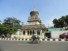 The tomb in Mughal and Qutb Shahi styles with elaborate stucco decorations and fretwork screens (jalis) was built by Nawab Abdul Haq Diler Jung for his mother Hazrath Saidani Ma Saheba in 1883, during the reign of Asaf Jah VI.[2][3]