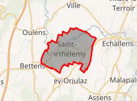 Saint-Barthélemy is just 10 minutes northeast of Lausanne, the capital of the canton, and 3 km (1.9 mi) west of Échallens, the capital of the district. It is situated in the bread-basket agricultural district known as the Gros-de-Vaud. It is traversed by the river Talent.
