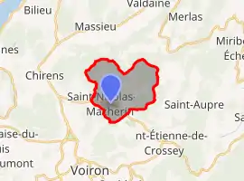 Saint-Nicolas-de-Macherin (French pronunciation: [sɛ̃ nikɔla də maʃʁɛ̃]) is a commune in the Isère department within Auvergne-Rhône-Alpes in southeastern France.[2] The area of the commune is 1,060 hectares and the altitude lies between 447 and 952 meters.
