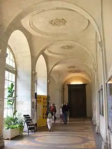 The French Revolution (1789) led to the departure of the monks and the eventual occupation of the abbey by departmental services of the revolutionary government.[3] The decree of 11 February 1791 officially authorizes the departmental (and local, urban) administration to meet in council. From the beginning of the prefecture, this building was assigned to it. The historical hall of the General Council, where the first council took place on July 20, 1790, is still in use today. However, the abbey did not only serve as a prefecture. For hundreds of years, it housed a library and archives even before it became an archaeological museum. It was even used as official accommodation for some civil servants in the public administration. But as these services multiplied, and despite the size of the space available, cohabitation caused a generalized overload of the building. The buildings were then extensively reworked to gain space and play on a spatial extension that did not excessively alter the aesthetics of the buildings. This was partially a failure with the closure of the cloister and the creation of the intermediate floors.