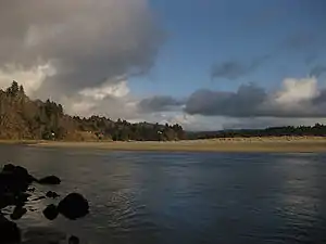 The Salmon River flows from the Central Oregon Coast Range to the Pacific Ocean coast of northwest Oregon in the United States.[2] About 24 miles (39 km) long,[4] it begins and ends in Lincoln County but also flows briefly through western Polk and southern Tillamook counties. Much of its course lies within the Siuslaw National Forest.[7]