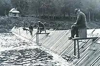 Japanese workers were prized for their ability to repair boats, as well as their skills as fishermen.[13] These skills placed them in direct competition with European and First Nations fishers.[18] Due to the nature of the jobs they performed, Japanese men were not seen as feminine, as the Chinese tended to be viewed. Although they were still segregated from other workers, they were paid more, and they were higher on the social scale. The Japanese played an important role in canneries until World War II, when many Japanese men were interned for the duration of the war. At this time, many of their fishing vessels were also confiscated, making returning after the war difficult for them.[19] Despite this treatment, many Japanese men did return to cannery life in the aftermath of the war, though the return was slow, and was not welcomed by all.