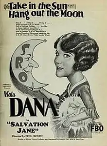 Salvation Jane is a 1927 American crime film directed by Phil Rosen and written by Doris Schroeder. The film stars Viola Dana, J. Parks Jones, Fay Holderness and Erville Alderson. The film was released on March 1, 1927, by Film Booking Offices of America.[1][2][3]