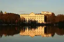 The Schloss had several owners during the 19th century (including two waiters who wanted to use it as a hotel, ex-King Ludwig I of Bavaria and a banker)[28] until it was bought in 1918 by the famous theatre director Max Reinhardt, co-founder of the Salzburg Festival.[29] During World War II the Schloss was confiscated as Jewish property. After the war, and Max Reinhardt's death, the Schloss was returned to the Reinhardt Estate. After two quick sales, first to a bank and then the City of Salzburg, Schloss Leopoldskron was sold to the "Salzburg Seminar in American Studies" in 1959.[30] The purchase price of the Schloss and 17 acres was "$77,000, plus $10,500 in solicitors' fees."[31] In 1973 the adjacent Meierhof, a part of the original Firmian estate, was also purchased by the Seminar.