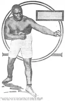 He fought future World Heavyweight Champion Jack Johnson on April 26, 1906, losing by a fifteenth-round decision. Johnson was 29 pounds heavier than Langford. Langford took severe punishment and was knocked down 3 times; however, he lasted the 15 round distance.[11] After winning their first match, Johnson repeatedly refused rematches against Langford, who was considered by some to be the most dangerous challenger for Johnson's crown, although Johnson cited Langford's inability to meet his $30,000 appearance fee.