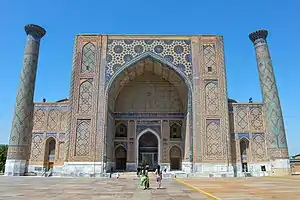 _on_the_Sher-dor_madrassa.JPG.webp) Tiger on the Sher-Dor Madrasah iwan Tiger on the Sher-Dor Madrasah iwan