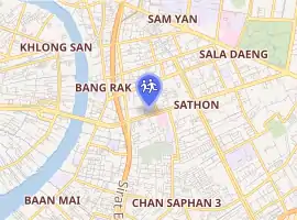 Bangkok Christian College's current campus is in the heart of the city, in Bang Rak, in the Silom District. The school is a one-minute walk from the Surasak BTS skytrain station.[7]