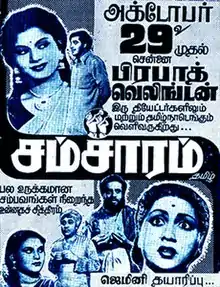 Samsaram (transl. Wife) is a 1951 Indian Tamil-language drama film directed by Chandru and produced by S. S. Vasan. A remake of the 1950 Telugu film of the same name, it stars M. K. Radha, Pushpavalli, Kumari Vanaja, Sriram, M. S. Sundari Bai, T. R. Ramachandran, D. Balasubramaniam, R. Balasubramaniam, K. N. Kamalam, and Kamalaveni Ammal. It was simultaneously filmed in Hindi as Sansar, which S. S. Vasan directed.[2]
