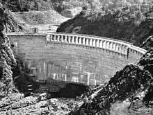 ![]() San Clemente Dam in 1921, shortly before its reservoir was impounded | |