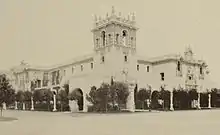 Various supporters of the 1915 Panama-California Exposition at Balboa Park expressed interest in repurposing buildings from the Exposition. This was complicated because the actual title to the land in Balboa Park remained with the City of San Diego.[2] In June 1916, museum supporter G. S. Thompson proposed that "The one legal ground that a private museum corporation has that will permit it to occupy city-owned buildings in a public park is that the museum authorities maintain exhibits that will be free, i.e., without admission charges, and open at all times to the public."[12]