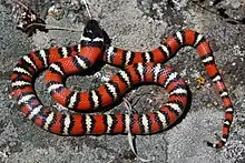 The San Diego mountain kingsnake (Lampropeltis zonata pulchra) is a subspecies of nonvenomous colubrid snake endemic to Southern California. Its state-level conservation status is "Species of Special Concern".[2]