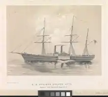 However, the Pacific Mail Steamship Company provided a regular mail service between San Francisco and New York that took about five weeks. Twice a month a steamer sailed from San Francisco to Panama City, while another sailed from New York to Chagres (Colón) on the other side of the isthmus of Panama. Passengers would cross the isthmus, a three day journey by canoe and mule, then take the waiting steamer to their destination.[18] The Herald published special editions named the Steamer Herald or San Francisco Herald for the steamer.[1] Presumably talking of the steamer edition, the Library of Congress says it was semimonthly, the masthead said "For circulation in the Atlantic States, Europe, South America, Sandwich Islands, Australia, and Islands of the Pacific.", and for each issue in 1859 the masthead named the packets that carried that issue.[1]