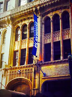 In 2012, San Francisco Playhouse moved from 533 Sutter Street to a 199-seat theater at 450 Post Street, inside of the Kensington Park Hotel.[7] The building was constructed in 1924 by architect Anthony Heinsberger as a lodge for the Elks.[11][12] The Elks began leasing out portions of the building in 1981.[11] Their former meeting hall was converted into a 750-seat theater by architect Gene Angell in 1982 for producers Jonathan Reisis and Joseph Perrotti.[11][12] They presented more than 60 productions in the space as Theatre on the Square.[11] When Theatre on the Square closed down in 2002,[13] the theater served as the home of other groups, including The Post Street Theatre[12] and The Lorraine Hansberry Theatre,[14] before becoming the site of San Francisco Playhouse.[15] During its tenure with The Lorraine Hansberry Theatre, renovations were made including reducing the audience capacity to 400.[14] The San Francisco Playhouse further reduced the seating to 199 prior to their inaugural production in the space in October 2012.[16]