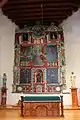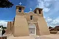 The mission at Ranchos de Taos was established in the early 18th century.[3] Initial construction began circa 1772[4][5] and completed in 1815[4] by The Franciscan Fathers; its patron is Saint Francis of Assisi.[6] It was the center of the fortified plaza, which provided for protection against Comanche attacks.[7] The church has undergone several restorations or subsequent works in 1850, 1916 and 1933. Including a thorough restoration in 1967. In 1967 a new roof was placed over the structure and all the ceiling beams (vigas) and most of the corbels were replaced with copies of the original. The doors were also replaced with copies of the original design.[3] The original sanctuary woodwork was left intact. The community and parishioners gather annually to earthen plaster the church.[8]