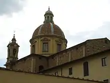 The church is dedicated to St Fridianus, an early Christian Irish pilgrim who became bishop of Lucca; putatively he miraculously crossed a swollen Arno river near this spot. A church at the site was present before the 11th century.[1] Starting during the papacy of Paul II in the 1460s, the church and adjacent convent were patronized by the Soderini Family. This continued under Cardinal Francesco Soderini.[2] The church suffered under the flood of 1557; the monks had to move to the nearby monastery of the Carmine.[3]