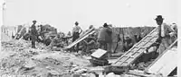 On April 9, 1920, Guatemala City was awakened with machine-gun fire and shells dropping close in every quarter of the city. In "La Palma" French field-howitzers and seventy-fives with anti-aircraft sights, quick firing guns and machine guns were drawn up;[6] on the other hand, in Guatemala City streets were deserted and bloodshed commenced in earnest.[7] The Unionists were caught off-guard: their organization was deficient, and they had almost no weapons, but they were able to remedy the situation. Government buildings were systematically plundered and ransacked and they got arms and ammunition from the most unlikely places; this way they got knives, machetes, saloon rifles, shotguns, axes and crowbars. With enthusiasm, all men raised barricades and dug trenches in the streets.[8]
